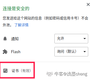 这时候就需要一个安全的第三方的颁布证书,来证明身份,防止中间攻击:所以就有了CA证书,仔细观察浏览器地址栏,会有一个"小锁"的标志,点开里面有证明身份的CA证书信息