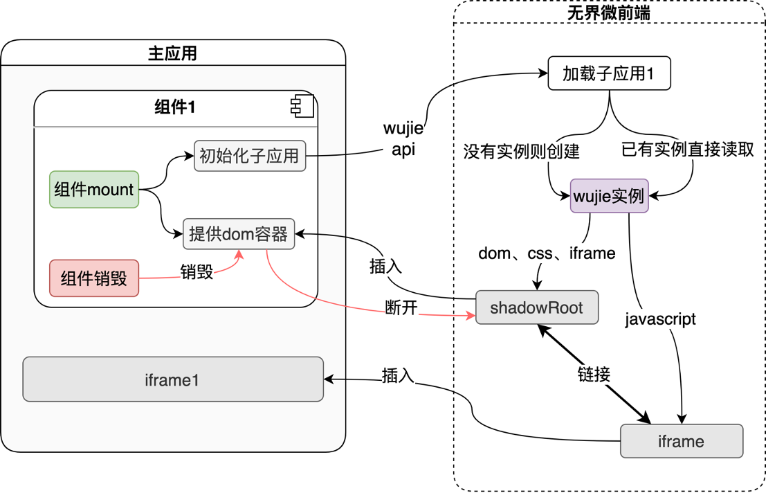 • ✅ 切换白屏的问题,一旦wujie实例可以缓存下来,子应用的切换成本变的极低,如果采用保活模式,那么相当于shadowRoot的插拔