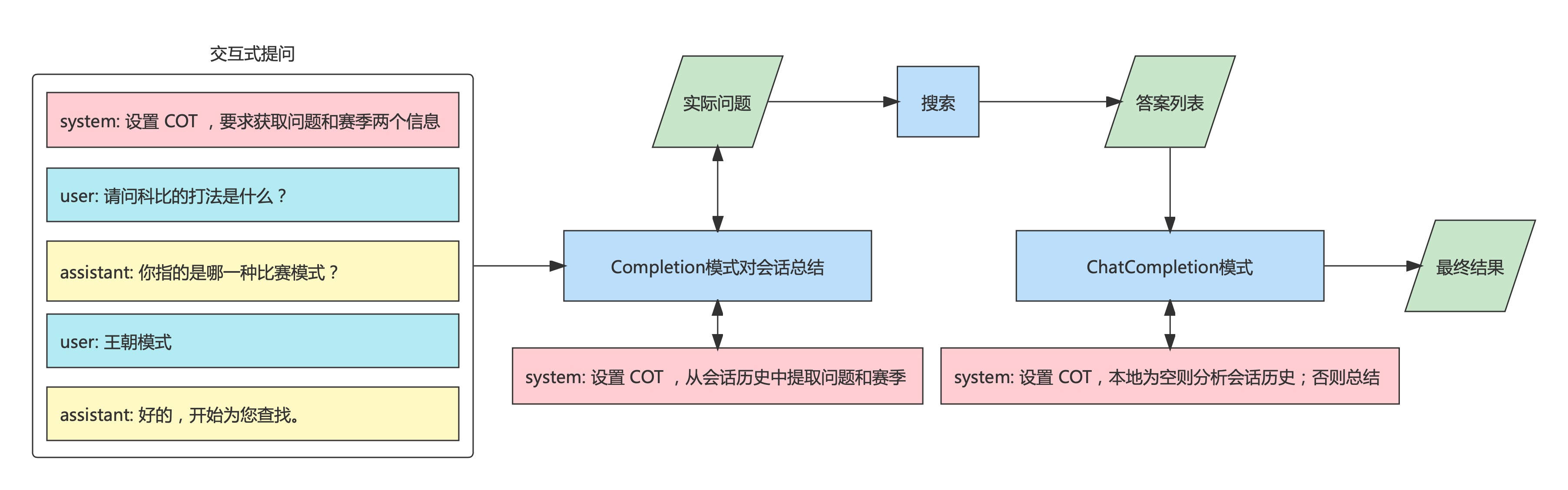 • 首先交互式提问完成后,对会话历史进行总结,让 ChatGPT 用一句话概括,须包含问题和赛季信息。