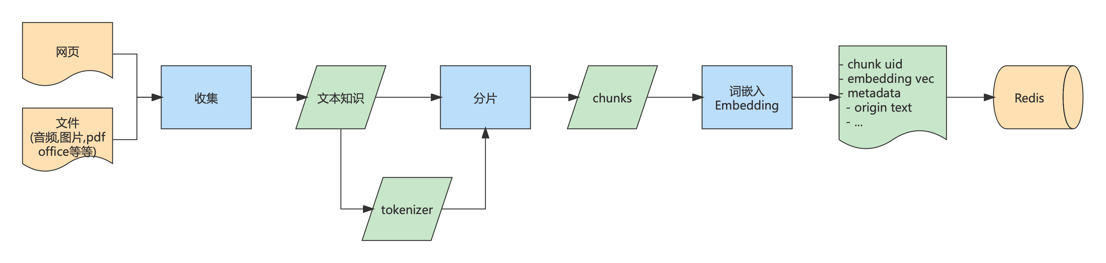 1. 使用 OpenAI 的 Embedding 接口将专业领域知识转化为向量,连同原始材料一并保存在 Redis 中。