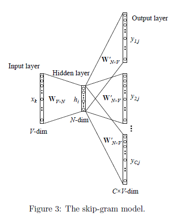 它的输入是采用One-Hot编码的词汇表向量,它的输出也是One-Hot编码的词汇表向量。使用所有的样本,训练这个神经元网络,等到收敛之后,从输入层到隐含层的那些权重,便是每一个词的采用Distributed Representation的词向量。比如,上图中单词的Word embedding后的向量便是矩阵 的第i行的转置。这样我们就把原本维数为V的词向量变成了维数为N的词向量(N远小于V),并且词向量间保留了一定的相关关系。