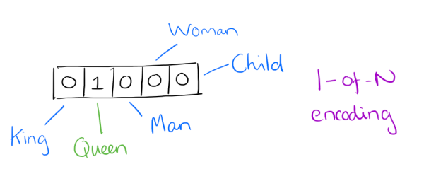 下图是采用Distributed representation的一个例子,我们将词汇表里的词用"Royalty","Masculinity", "Femininity"和"Age"4个维度来表示,King这个词对应的词向量可能是(0.99,0.99,0.05,0.7)。当然在实际情况中,我们并不能对词向量的每个维度做一个很好的解释。
