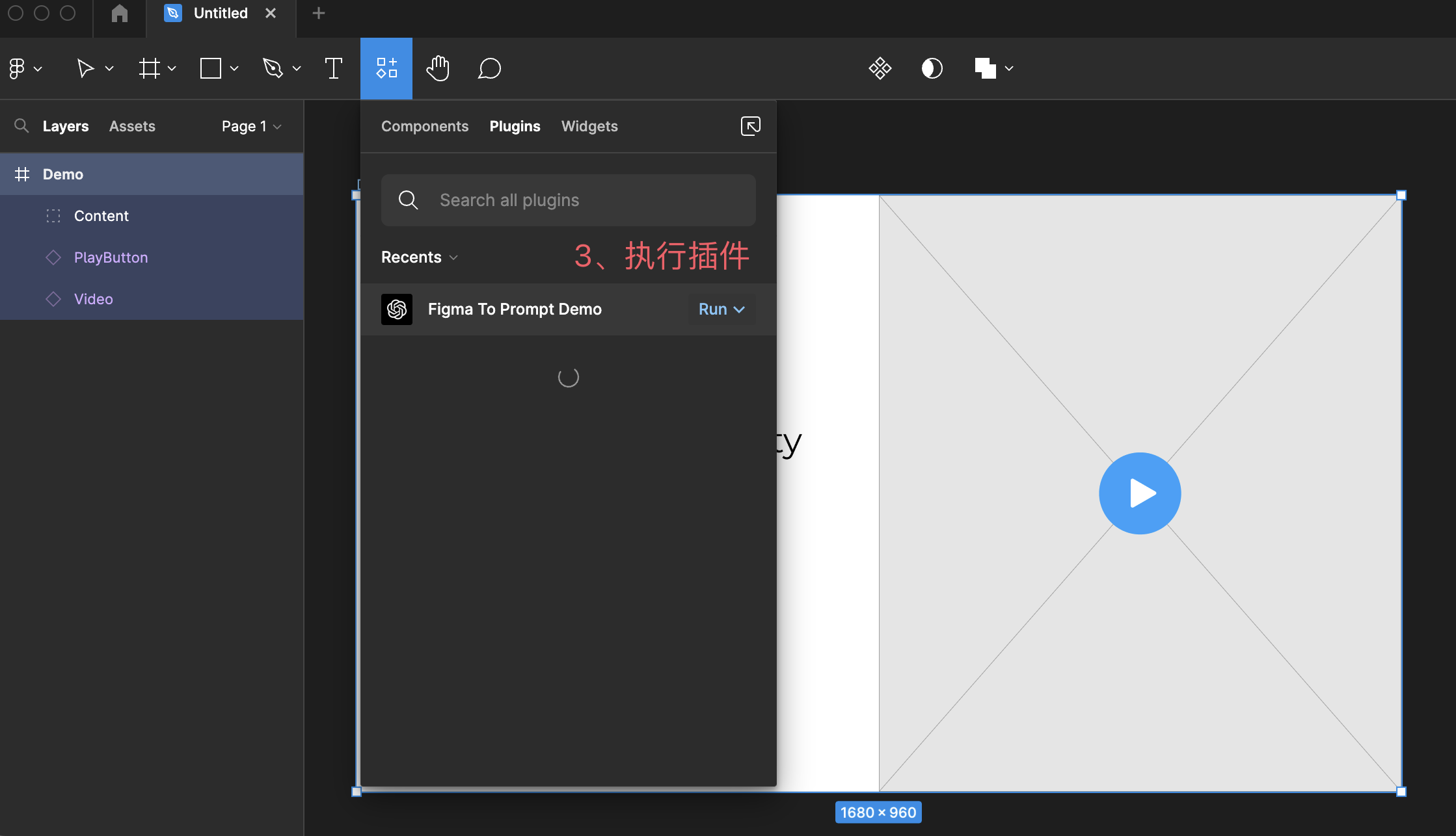 这种类型的工具目前还没有现成的产品可以参考,不过当前主流的设计软件对第三方插件的兼容性都非常出色,作为一位开发,遇到没有的工具自己开发一个嘛。找设计同学咨询了下,得知他们目前主要使用的设计工具是Figma,于是在花了些时间后就开发了一个简单的将Figma设计稿转化为ChatGPT Prompt的插件Demo: