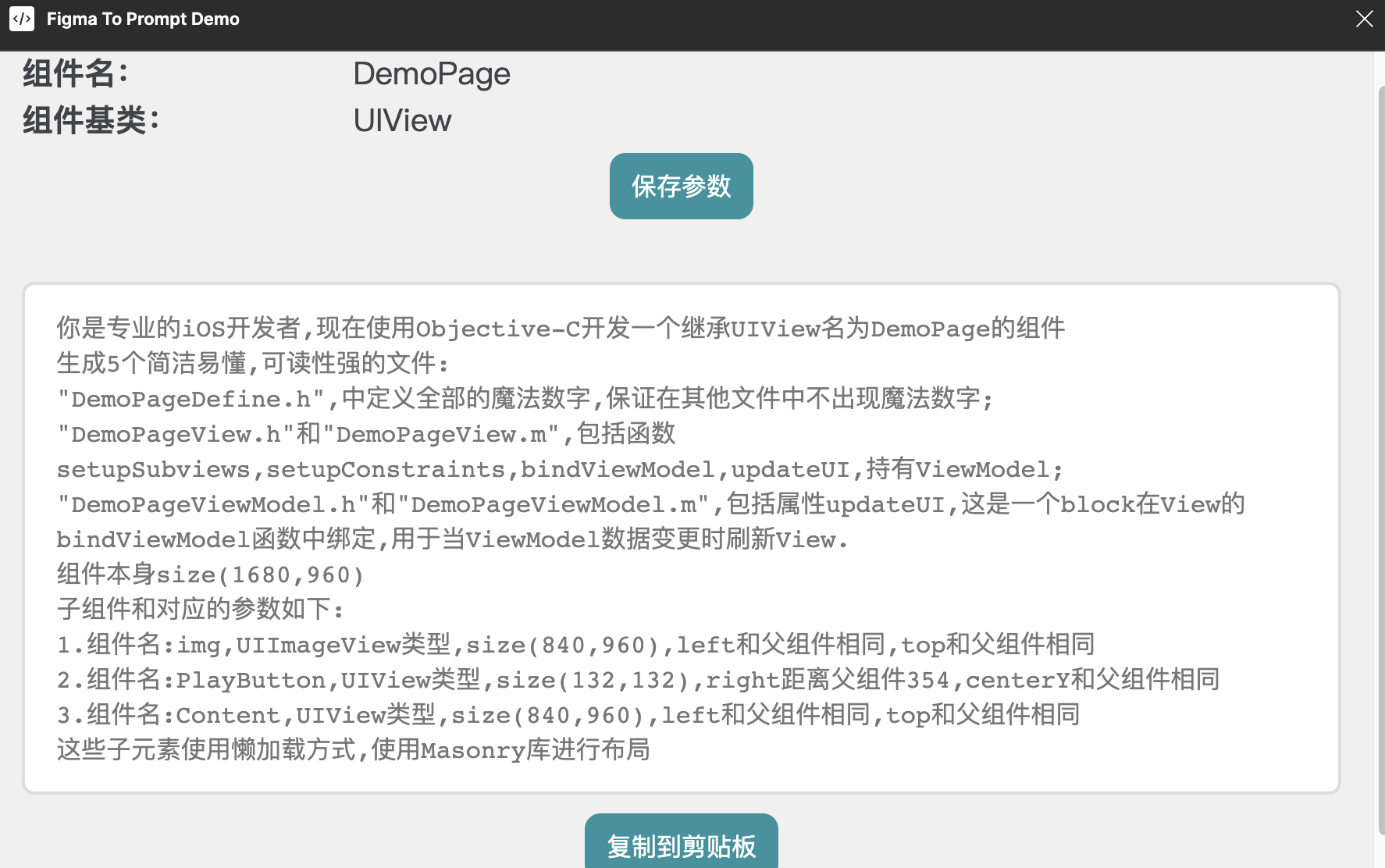 插件地址: https://www.figma.com/community/plugin/1221029912601242433/Figma-To-Prompt-Demo